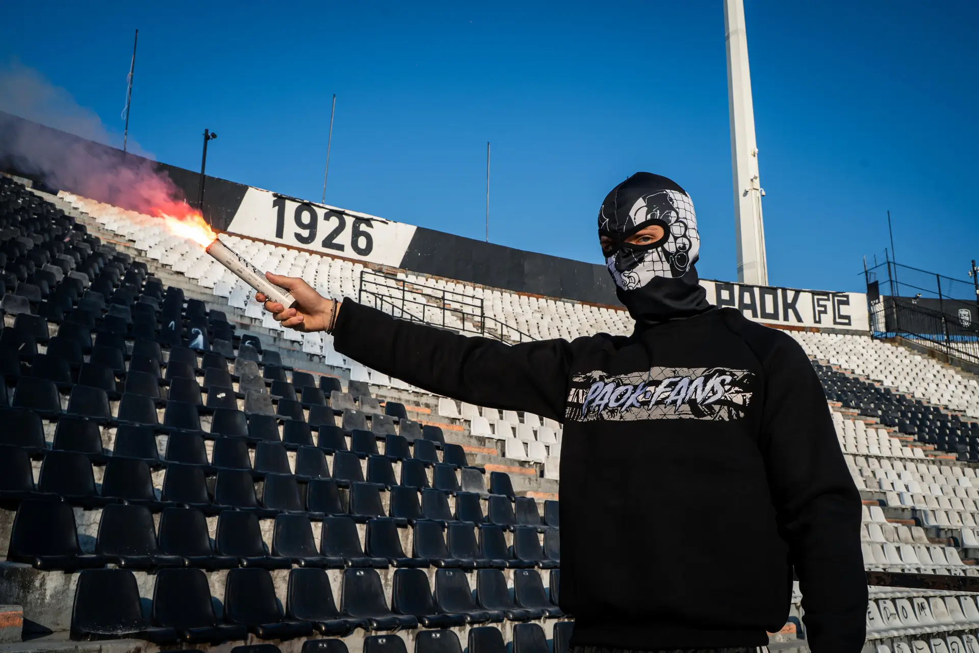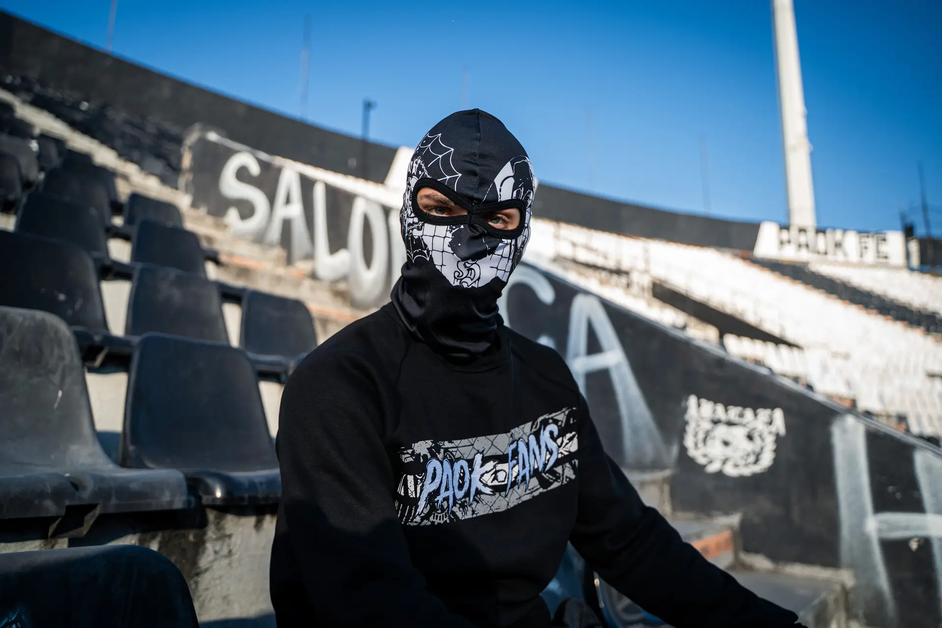 Μαύρο φούτερ με δυναμικό τύπωμα “PAOK Fans” και λεπτομέρειες λογότυπου Abalaea στο μανίκι και στην πλάτη.