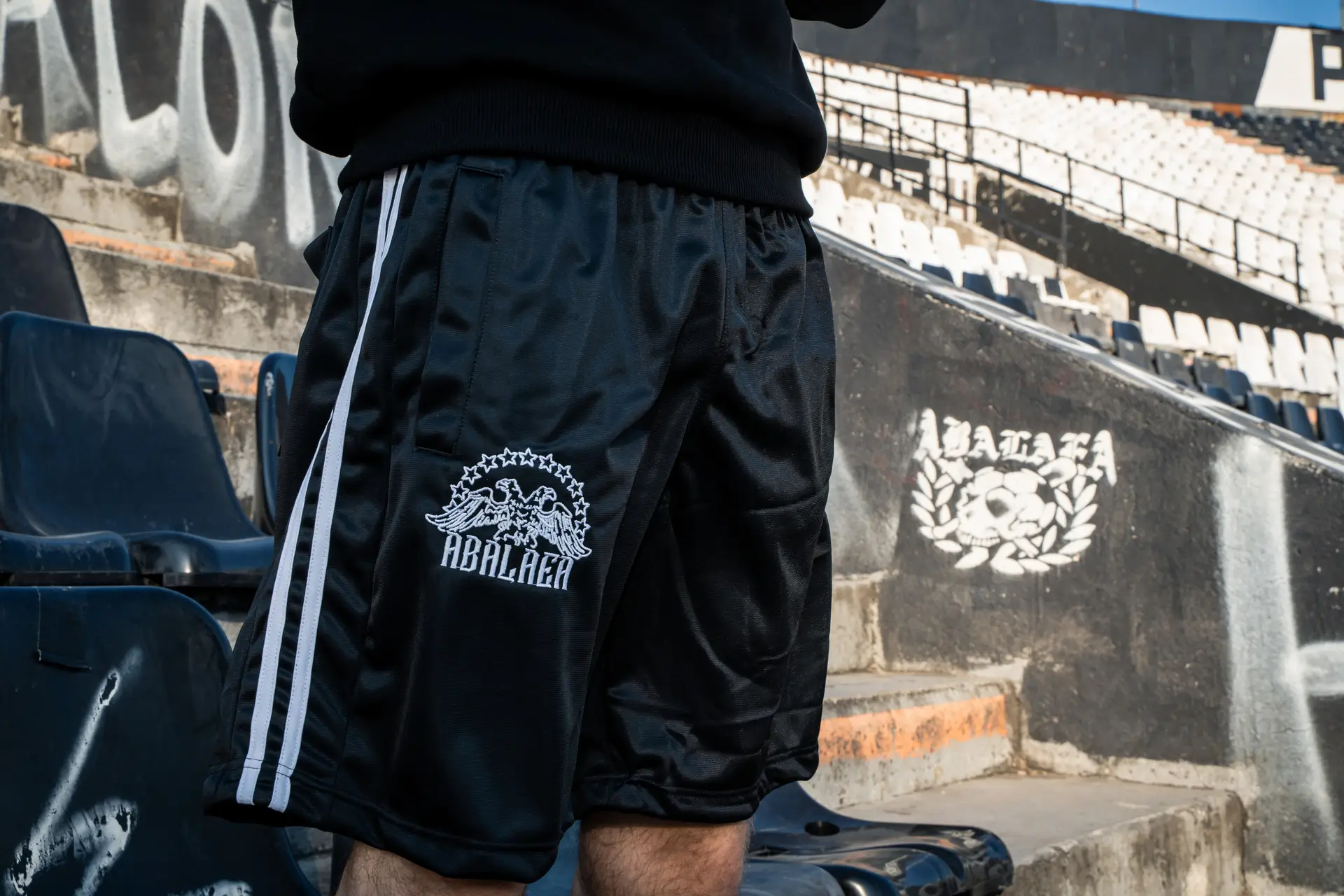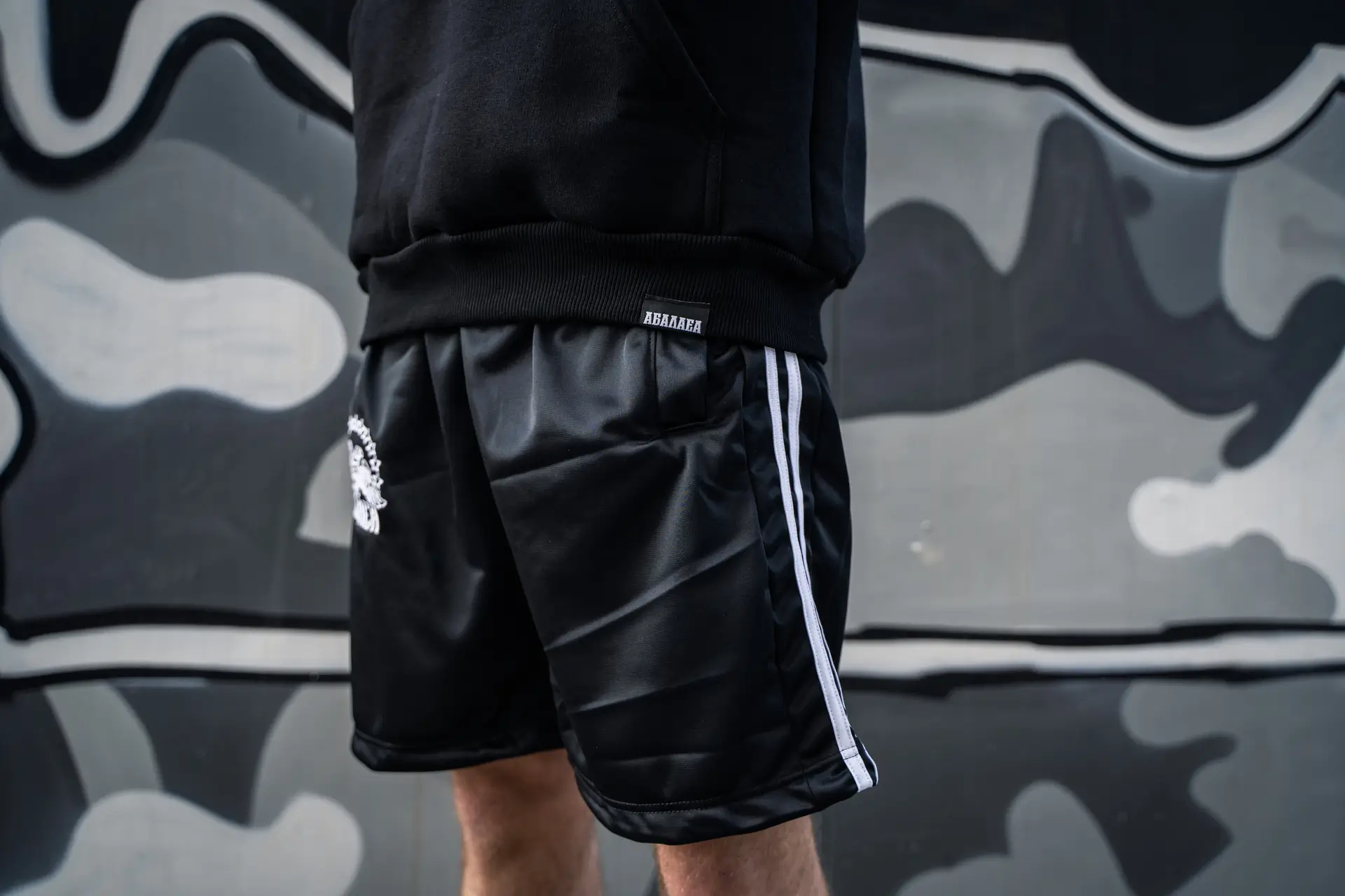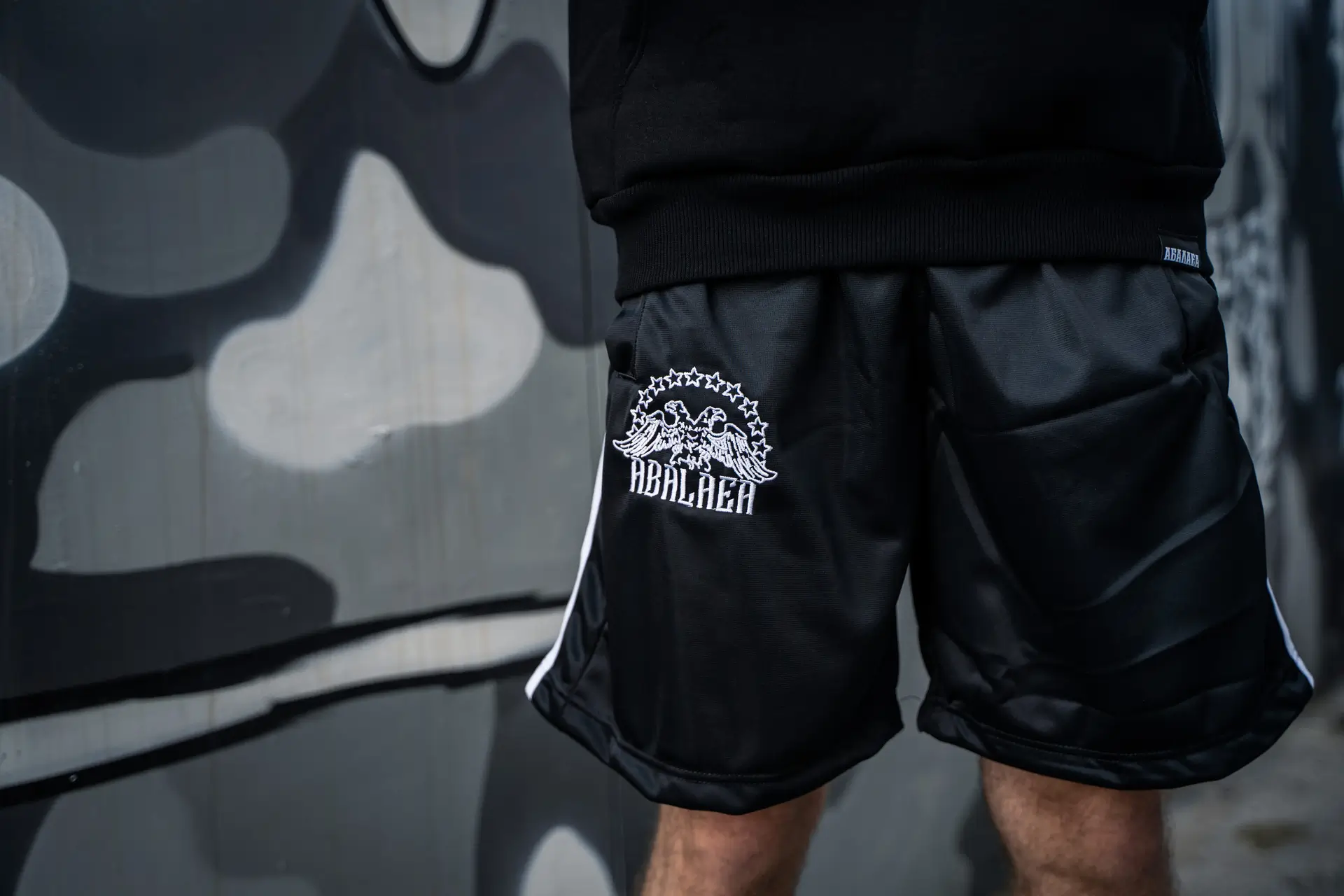 Μαύρο παντελόνι φόρμας με τριπλή λευκή ρίγα και λογότυπο ABALAEA στο αριστερό πόδι. Άνετη γραμμή για καθημερινή χρήση, προπόνηση ή casual streetwear.