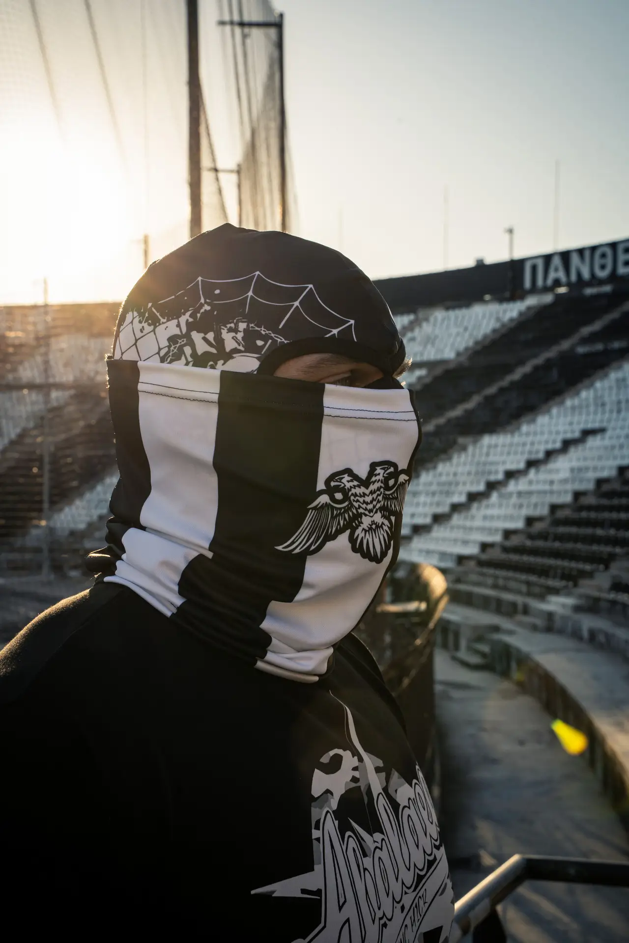 Ελαστικό κάλυμμα προσώπου τύπου buff (tube bandana) σε δύο διαφορετικά σχέδια : “Fights & Tours” και Δικέφαλος Αετός. Ιδανικό για προστασία και χρήση σε εξωτερικούς χώρους.